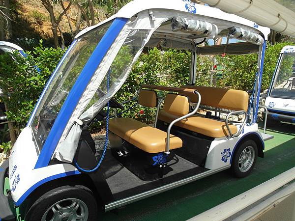 在門口買好門票後,旁邊有個等車的地方,可以搭這種高爾夫球車上去館內參觀喔!!